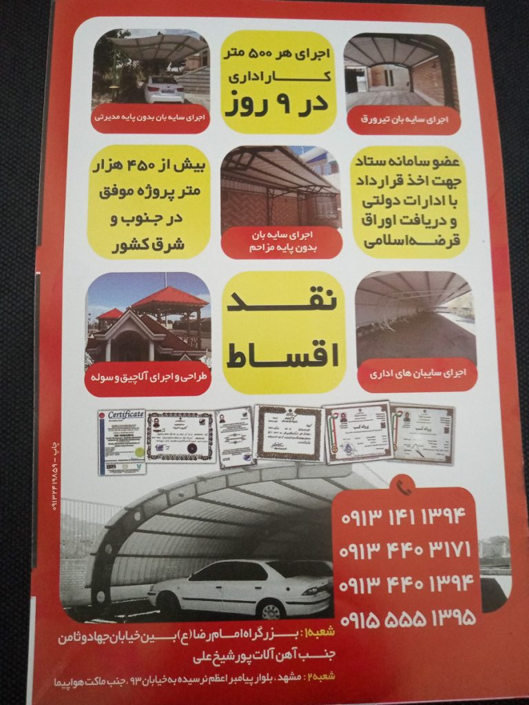 زمینه فعالیت: سایبان فلزی